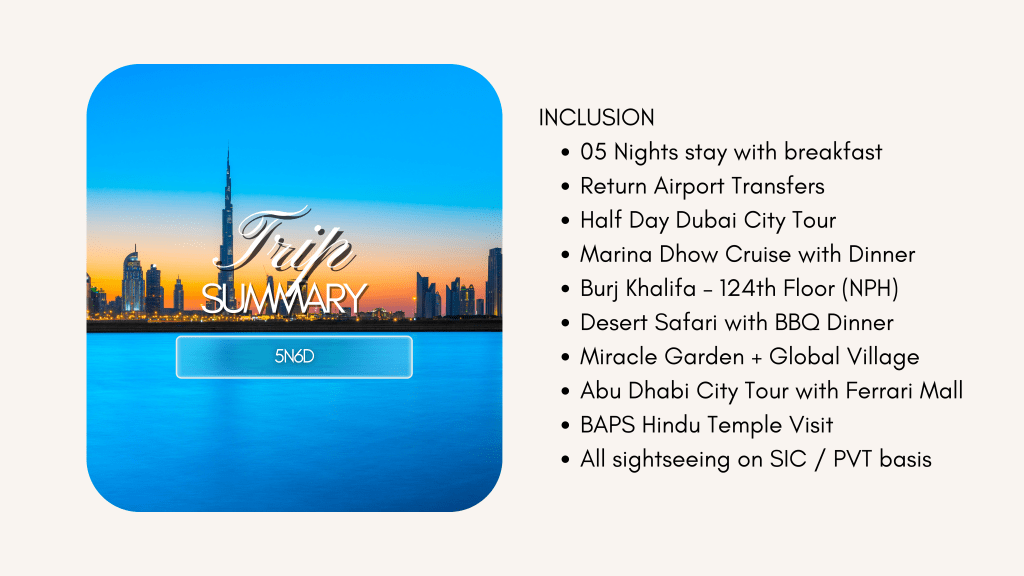 Flights and visa are not included in the package price.